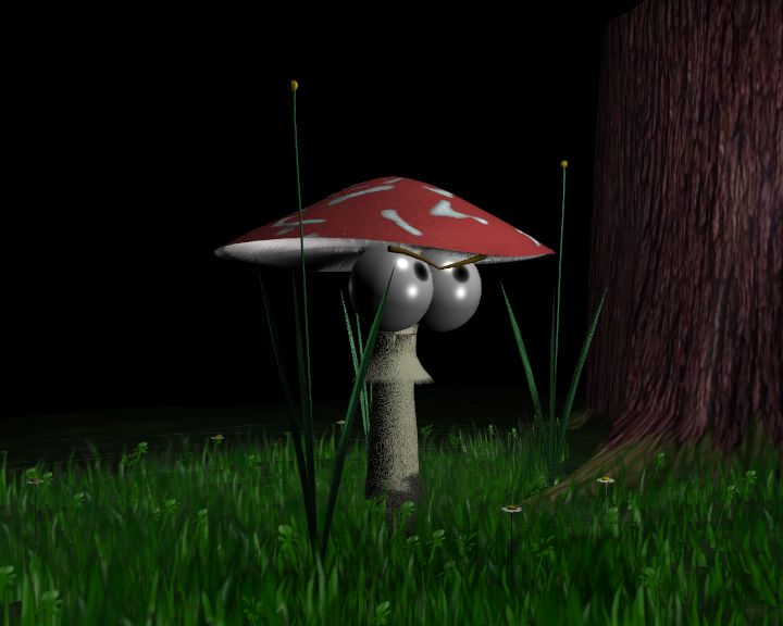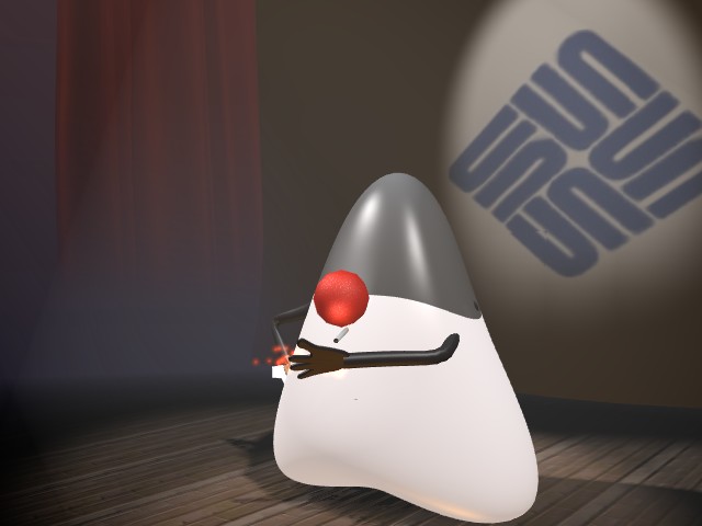 The little guy's eyes are made of nurbs, then converted into meshes.