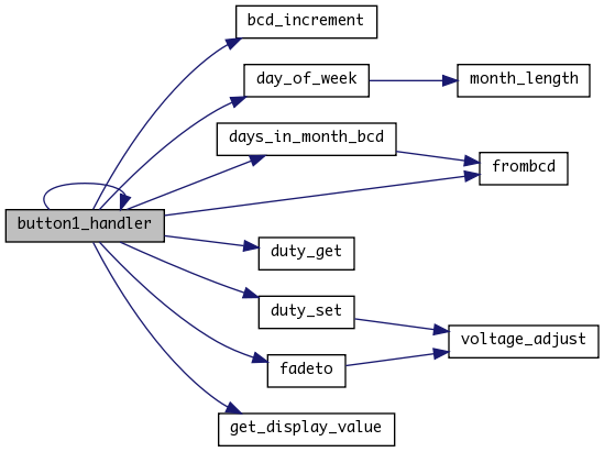 00056 { 00057 static uint8_t skip = 0; 00058 00059 if (on) { 00060 if (skip > 0) { 00061 skip--; 00062 return; 00063 } 00064 00065 switch (set_state) { 00066 case SET_NONE: 00067 duty_set(duty_get() % 4 + 1); 00068 skip = 1; 00069 break; 00070 00071 case SET_HOUR: 00072 set_blinkhandler(button1_handler); 00073 00074 rtc_time.hour = bcd_increment(rtc_time.hour); 00075 00076 if (rtc_time.hour == 0x24) rtc_time.hour = 0; 00077 00078 rtc_xhour(rtc_time.hour); 00079 00080 fadeto((get_display_value() & 0377) | (rtc_time.hour << 8)); 00081 break; 00082 00083 case SET_MINUTE: 00084 set_blinkhandler(button1_handler); 00085 00086 rtc_time.minute = bcd_increment(rtc_time.minute); 00087 if (rtc_time.minute == 0x60) rtc_time.minute = 0; 00088 rtc_xminute(rtc_time.minute); 00089 rtc_xseconds(0); 00090 reset_seconds = 1; 00091 00092 fadeto((get_display_value() & 0xff00) | rtc_time.minute); 00093 break; 00094 00095 case SET_YEAR: 00096 set_blinkhandler(button1_handler); 00097 00098 rtc_time.year = bcd_increment(rtc_time.year); 00099 rtc_xyear(rtc_time.year); 00100 00101 rtc_xdow(day_of_week(frombcd(rtc_time.year), frombcd(rtc_time.month), frombcd(rtc_time.day))); 00102 00103 fadeto(0x2000 + rtc_time.year); 00104 break; 00105 00106 case SET_MONTH: 00107 set_blinkhandler(button1_handler); 00108 00109 rtc_time.month = bcd_increment(rtc_time.month); 00110 if (rtc_time.month == 0x13) rtc_time.month = 1; 00111 rtc_xmonth(rtc_time.month); 00112 00113 rtc_xdow(day_of_week(frombcd(rtc_time.year), frombcd(rtc_time.month), frombcd(rtc_time.day))); 00114 00115 fadeto(maketime(rtc_time.day, rtc_time.month)); 00116 break; 00117 00118 case SET_DAY: 00119 set_blinkhandler(button1_handler); 00120 00121 rtc_time.day = bcd_increment(rtc_time.day); 00122 if (rtc_time.day > days_in_month_bcd(rtc_time.year, rtc_time.month)) { 00123 rtc_time.day = 1; 00124 } 00125 rtc_xday(rtc_time.day); 00126 00127 rtc_xdow(day_of_week(frombcd(rtc_time.year), frombcd(rtc_time.month), frombcd(rtc_time.day))); 00128 00129 fadeto(maketime(rtc_time.day, rtc_time.month)); 00130 break; 00131 } 00132 } else { 00133 cli(); blinkhandler = NULL; skip = 0; sei(); 00134 } 00135 }